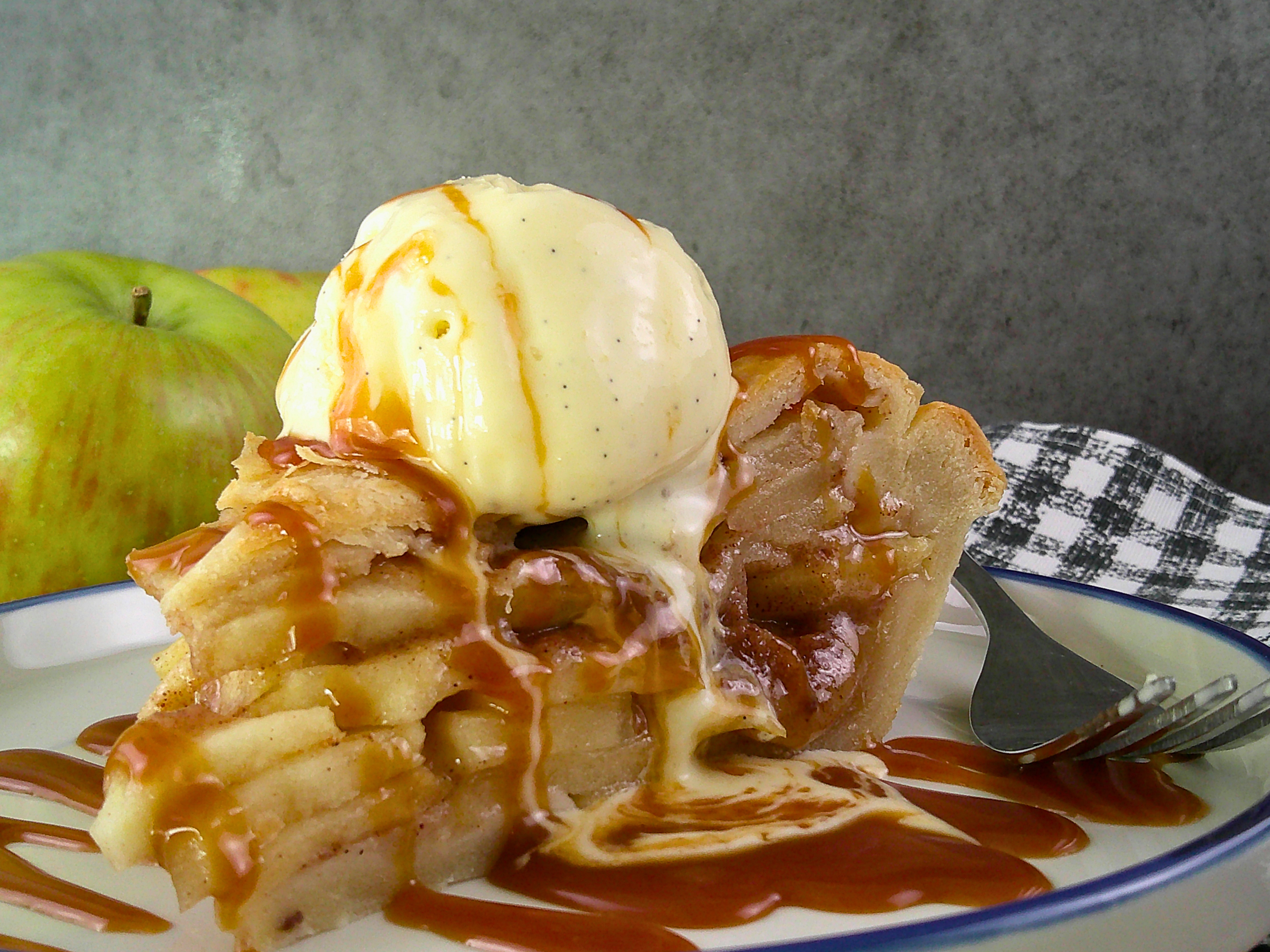 Classic Vanilla Ice Cream: A scoop of cold, creamy vanilla ice cream is a traditional and unbeatable pairing with warm apple pie. The contrast of temperatures and textures is divine.