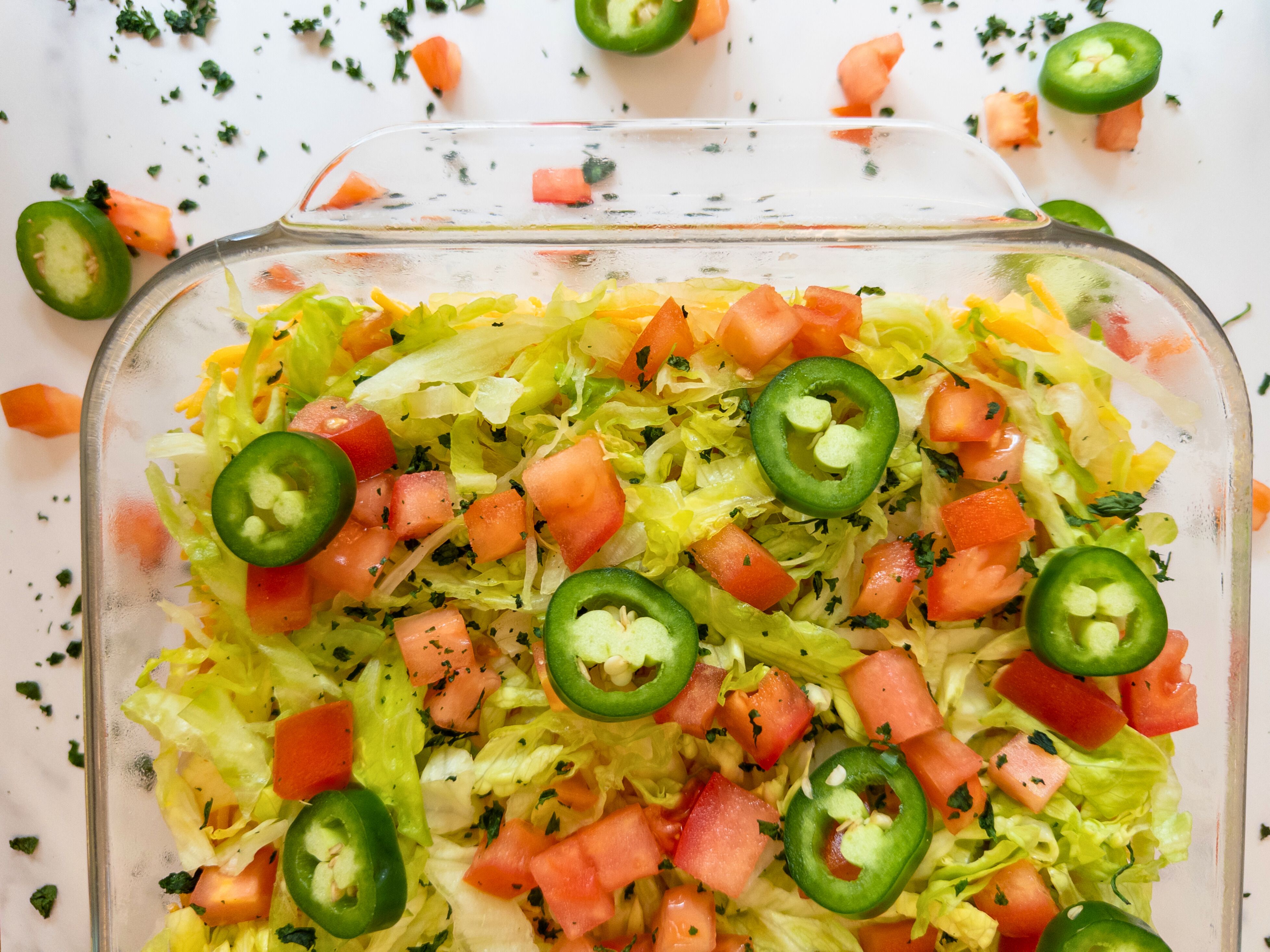 Making taco dip couldn’t be easier. Here’s how to do it:
