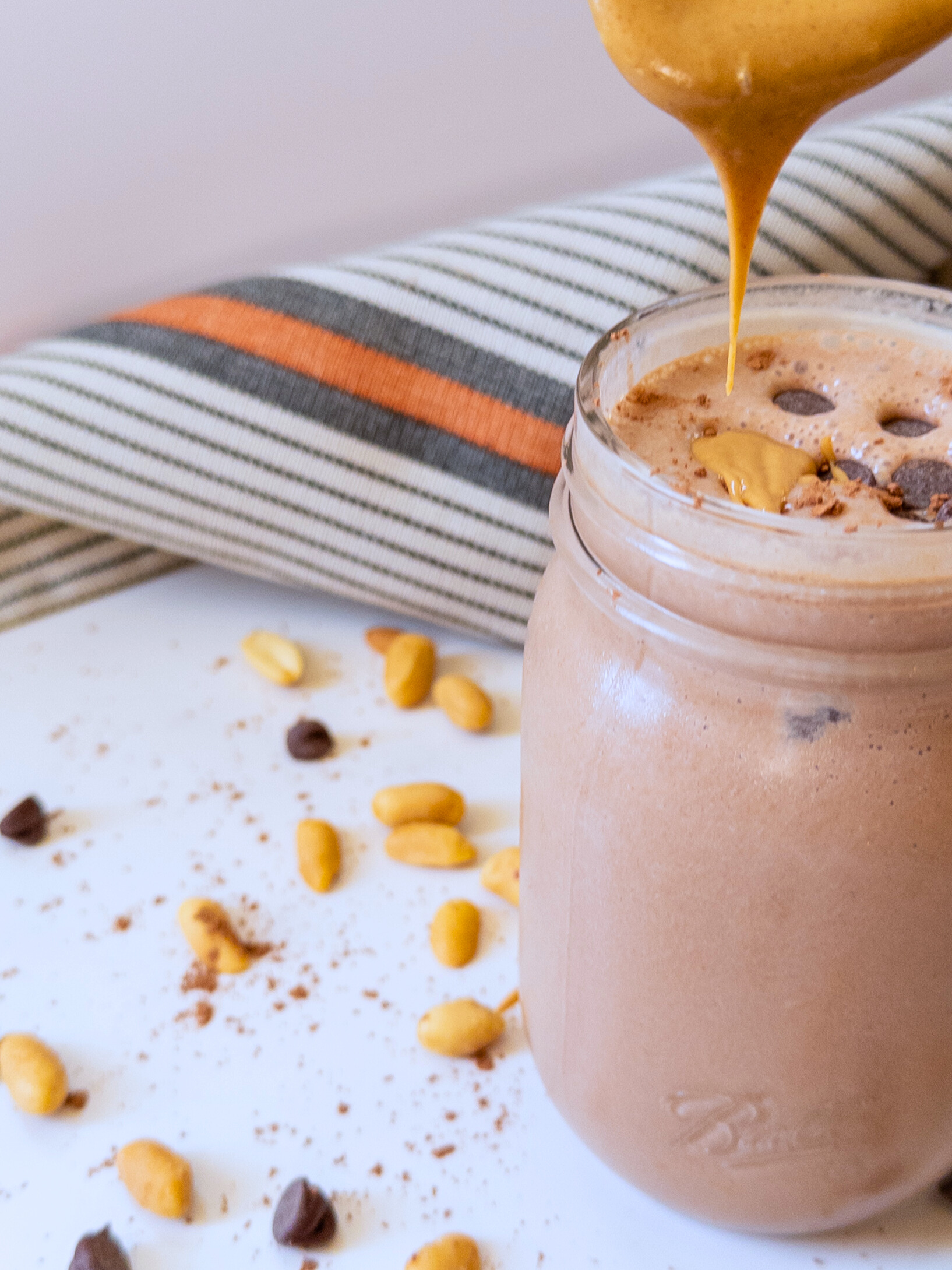 Sneak in a handful of spinach or kale for added nutrients. The chocolate and peanut butter flavors are strong enough that you won’t even taste the greens!