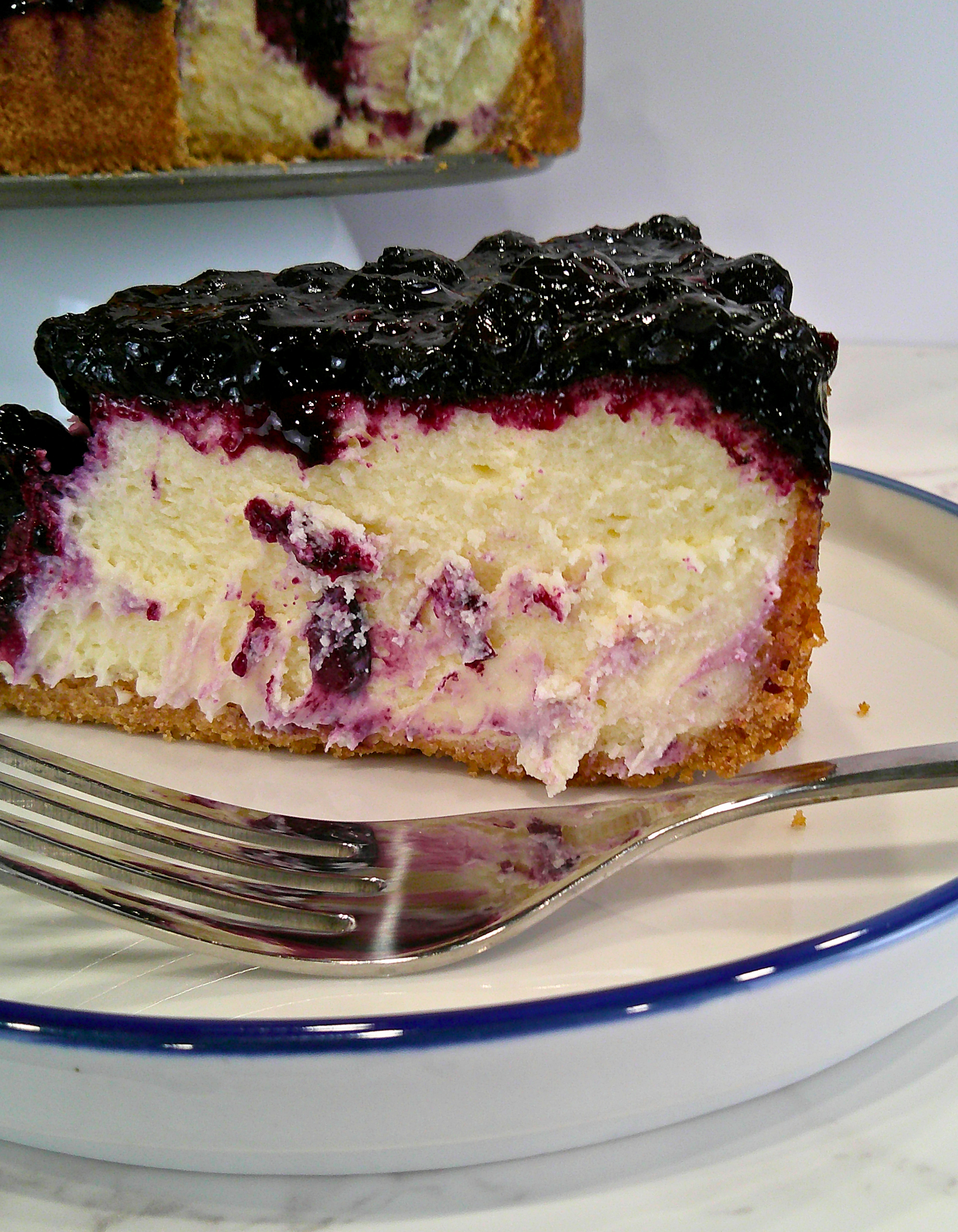 If your cheesecake cracks, don’t worry—it’s purely cosmetic, and the blueberry topping covers it beautifully.