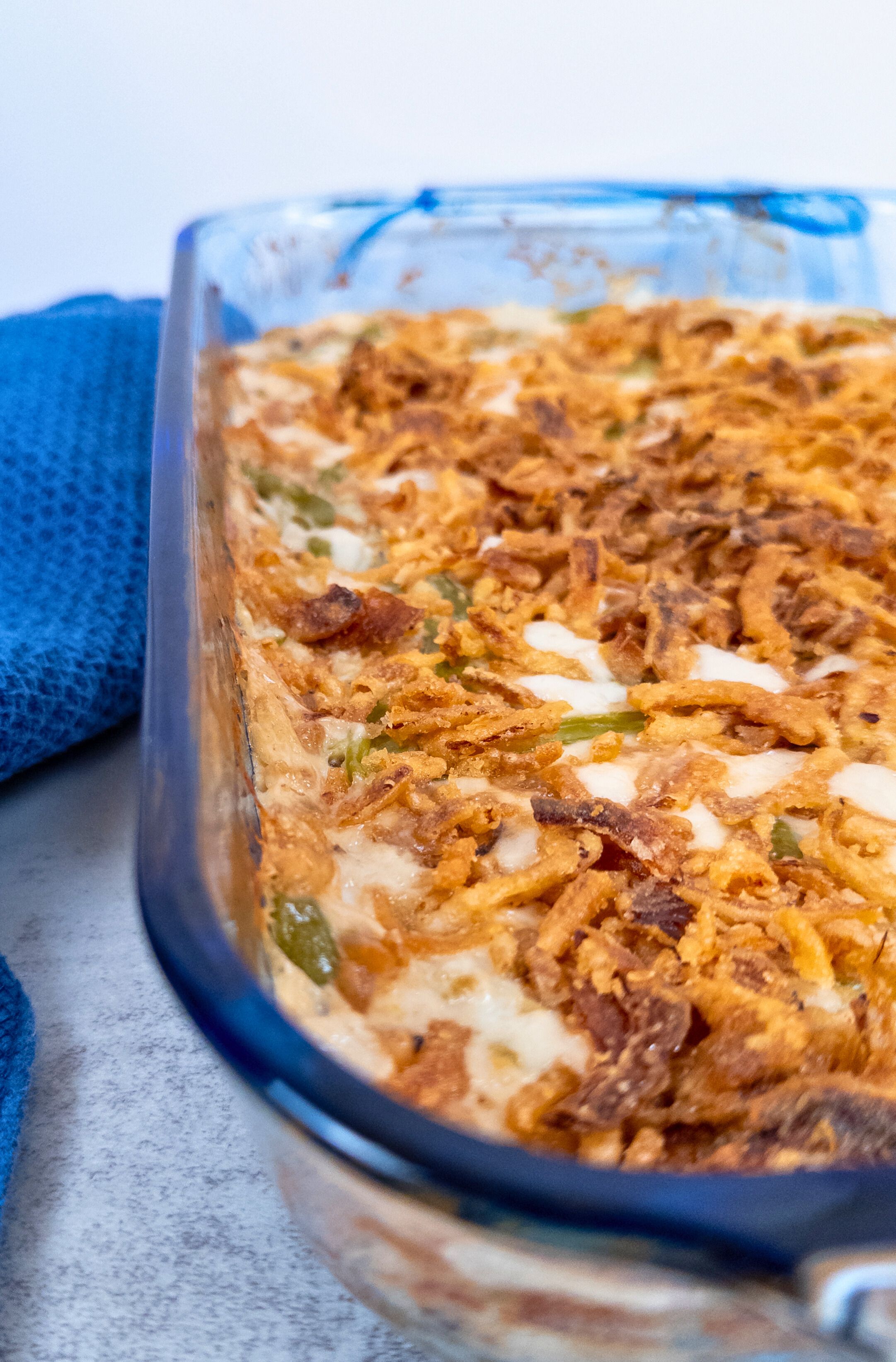 To make this casserole gluten-free, use a gluten-free cream soup and gluten-free fried onions. You’ll find both in most grocery stores these days, and they taste just as good as the traditional versions.
