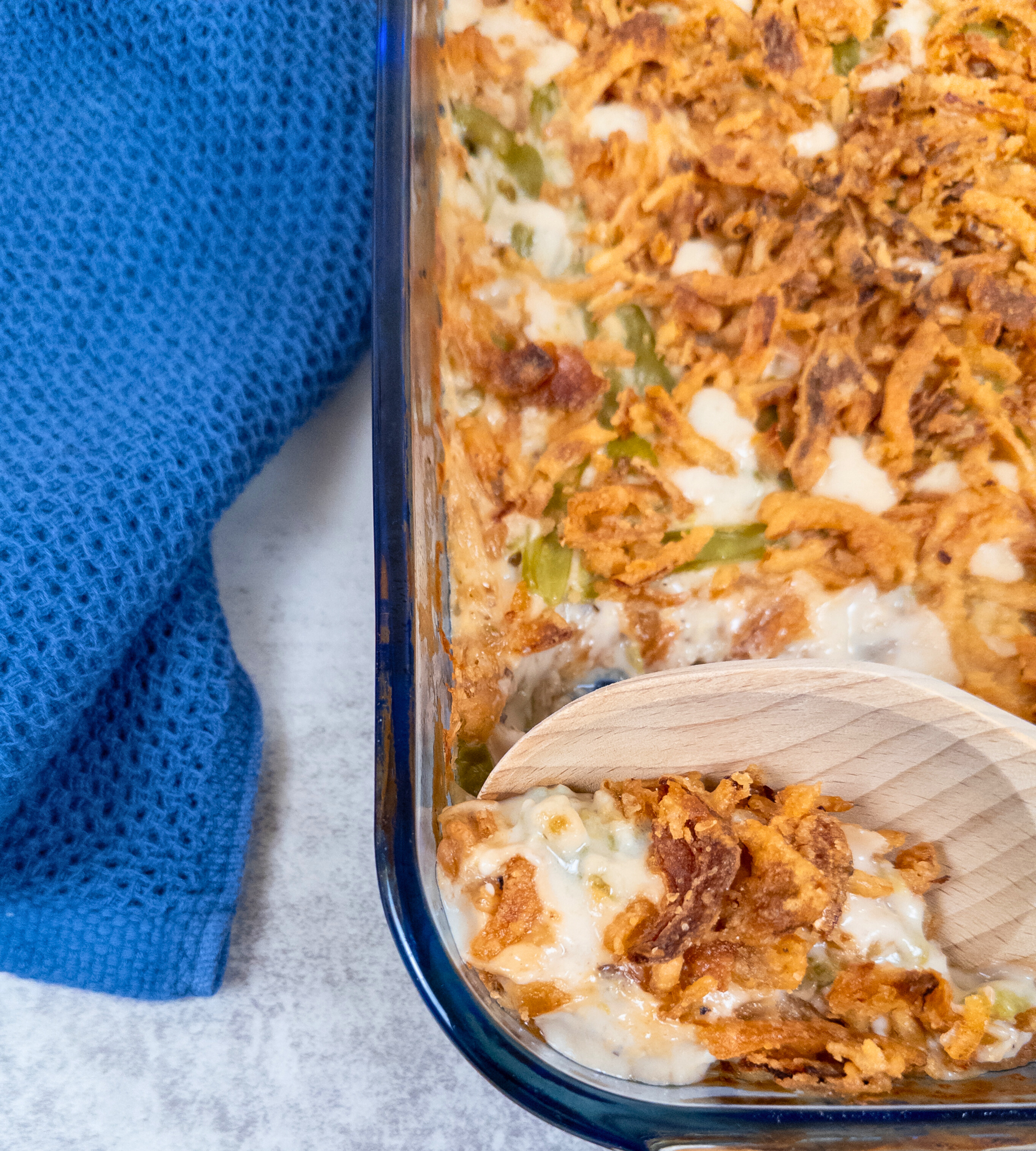 To make this casserole gluten-free, use a gluten-free cream soup and gluten-free fried onions. You’ll find both in most grocery stores these days, and they taste just as good as the traditional versions.